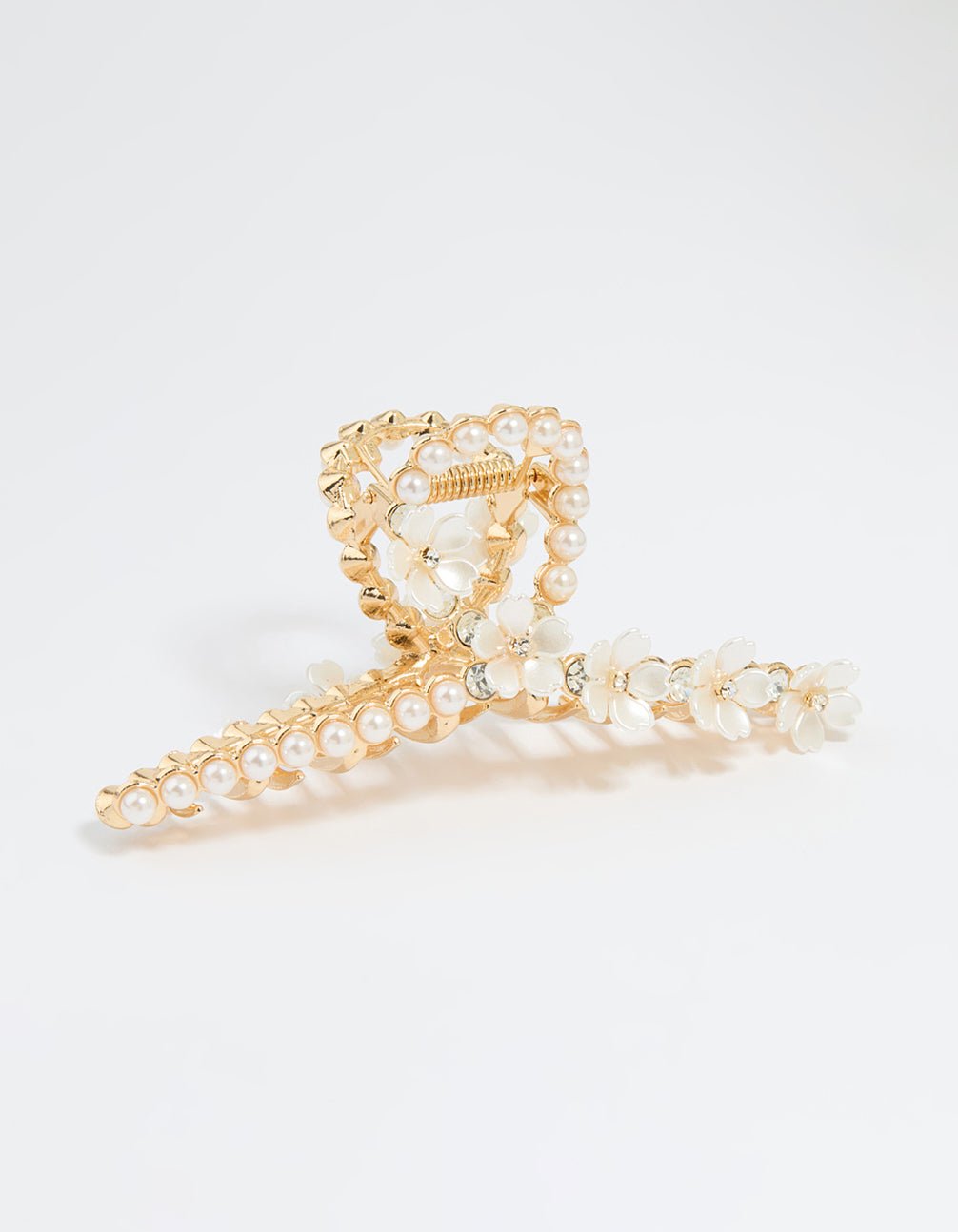 – Add a touch of elegance to your look with this Gold Pearl Flower Twist Claw Clip – This stunning clip features a graceful twist design adorned with delicate flowers and lustrous pearls, perfect for creating timeless bridal hairstyles. -Whether you’re styling a romantic chignon, soft waves, or a half-up, half-down look, this claw clip offers both practicality and sophistication. – Ideal for weddings, parties, or any occasion that calls for a little extra sparkle, it pairs beautifully with flowing gowns, tailored jumpsuits, or even a chic cocktail dress. – Perfect for brides or anyone looking to add a touch of glamour, this clip is your go-to for polished, picture-perfect hair.