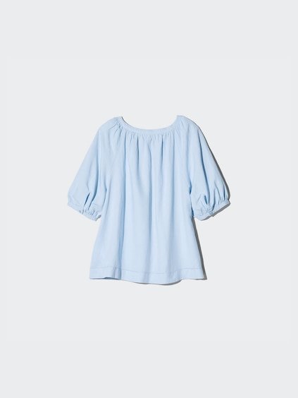 – Sleek neckline with voluminous raglan sleeves.